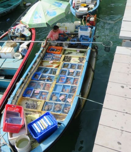 Back on the mainland, we watched the local fishermen pull their boats alongside the dock to sell their catch:
