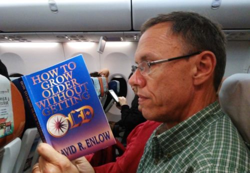 (reading my birthday book on the return flight)