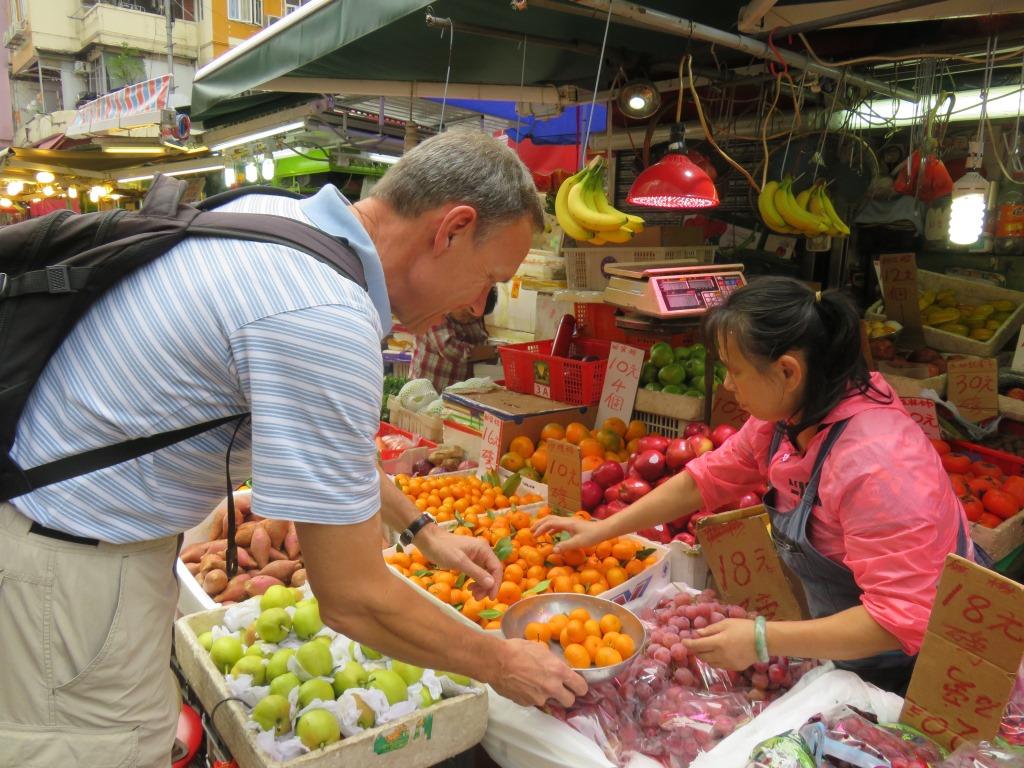 Once I got it working, it was wonderful to use the “CityMapper” app for transit directions. Hong Kong is the most densely populated place on earth, but it also has some wonderful parkland. To prepare for our hike, we bought some fruit at a typical Chinese market: