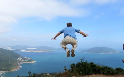 There are some steep ledges, enabling the obligatory “jumping off the edge photo”: