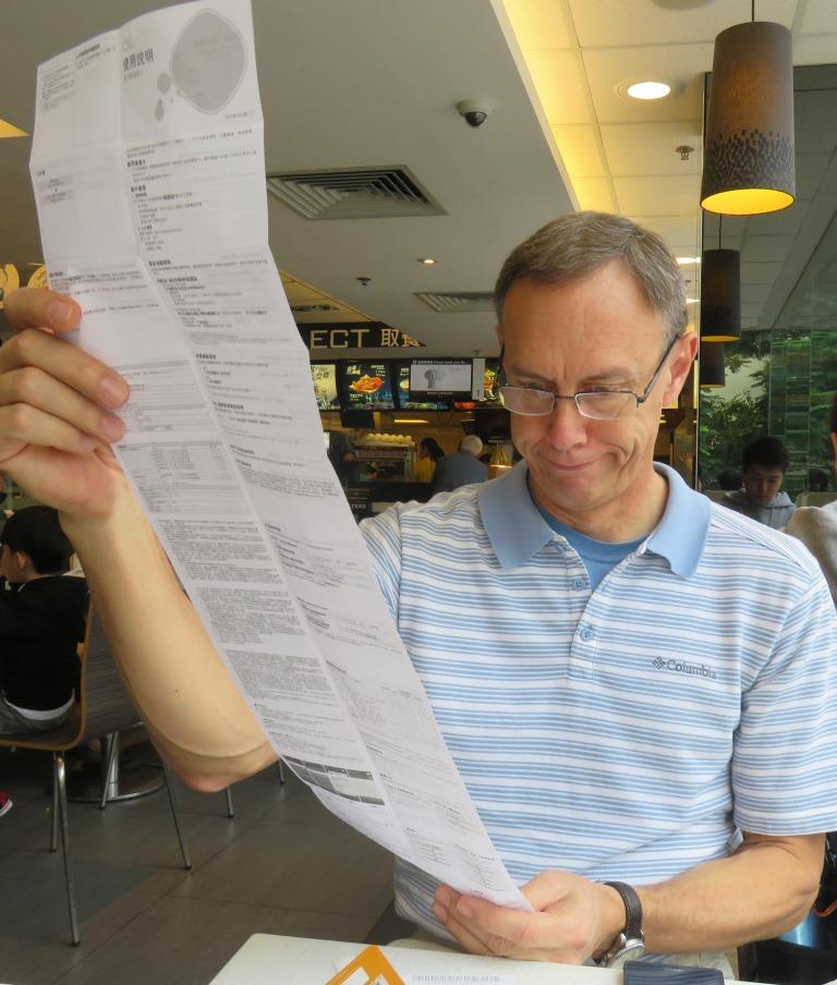 In order to celebrate my 60th birthday, we took a break from our overloaded schedule and flew to Hong Kong for a few days. Upon arrival, I bought a temporary SIM card for my phone and read the “simple” instructions: