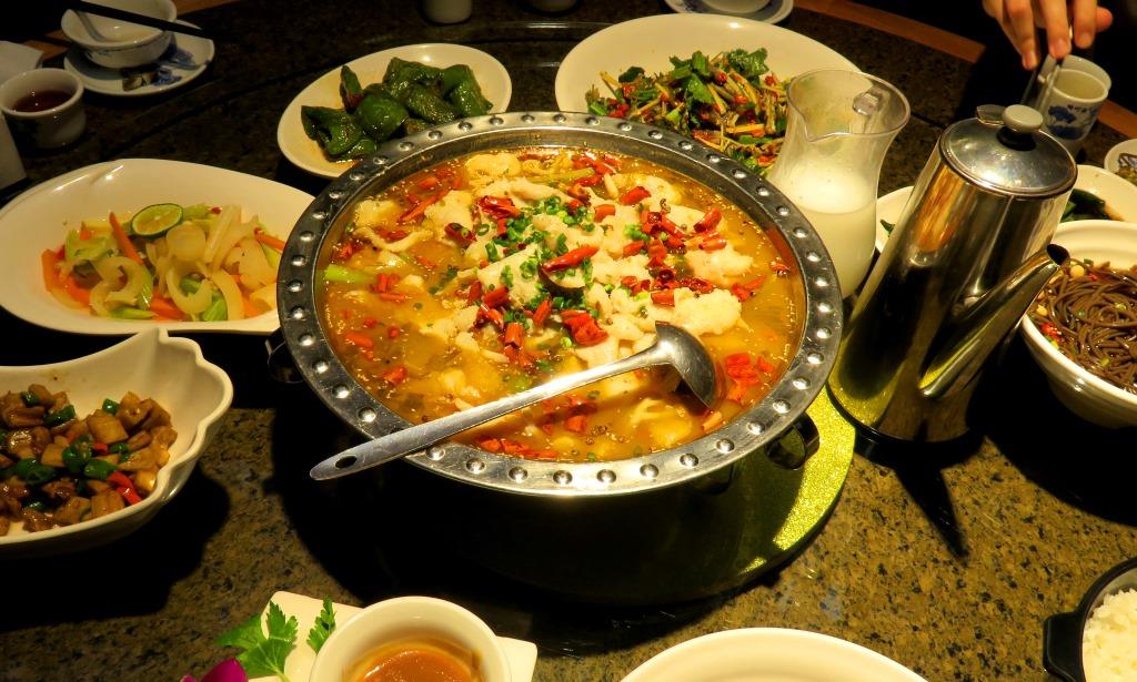 One more food photo: a recent dinner featured this dish of spicy fish soup: