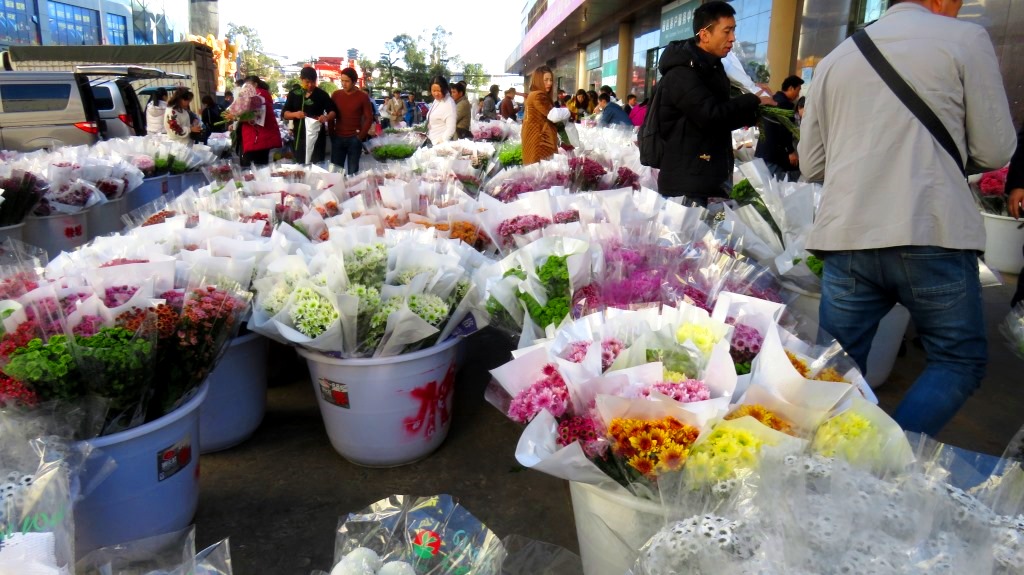 On Sunday afternoon we visited the Kunming Flower Market on the southeast side of town. 70% of the flowers grown in China come from our province (about $5 billion USD/year), and many of those flowers pass through this market. Every day, farmers deliver their flowers