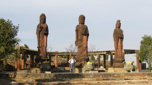We recently climbed to the top of the nearby mountain where three huge statues keep a stony watch over a large cemetery while pre-recorded Buddhist chants play in the background:
