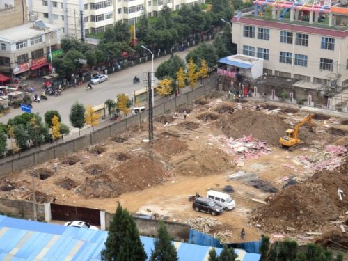 This sport seems to be growing in popularity, with numerous targets hanging from trees along the mountain road. Back at our apartment, a construction project has begun to transform the vacant lot outside our window: