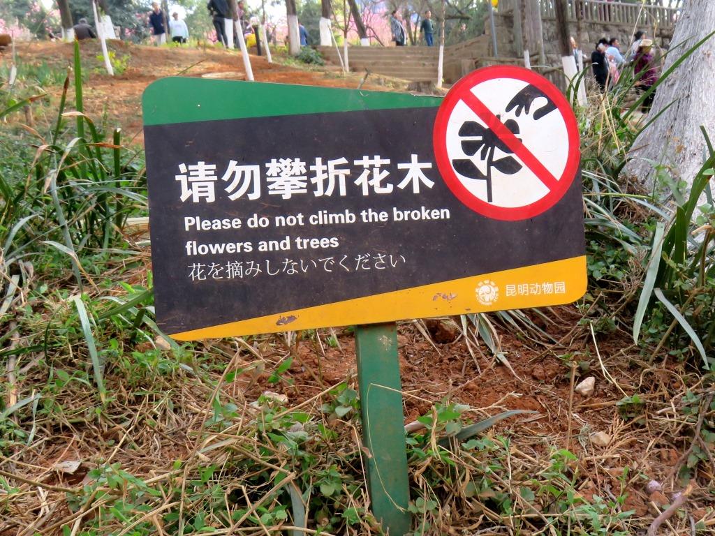 In spite of recent efforts to eliminate chinglish, we still see signs that could benefit from some grammatical assistance. Based on this sign, we assume that it is OK to climb the healthy trees: