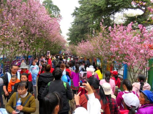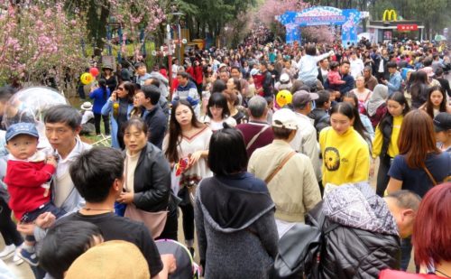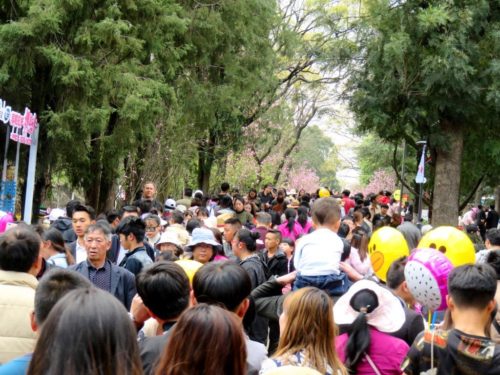 Chinese language contains many four-character idioms. One is 人山人海 (rén shān rén hǎi), meaning “people mountain people sea.” It refers to huge crowds of people, like we experienced last week at the zoo-park: