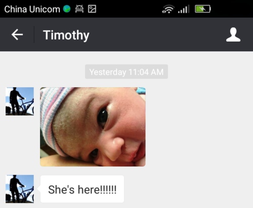 Of course, the best gift of all came while we were sitting in the local police station on Friday morning, registering our new residence permit. We received the following message from our son on WeChat (instant messaging app):