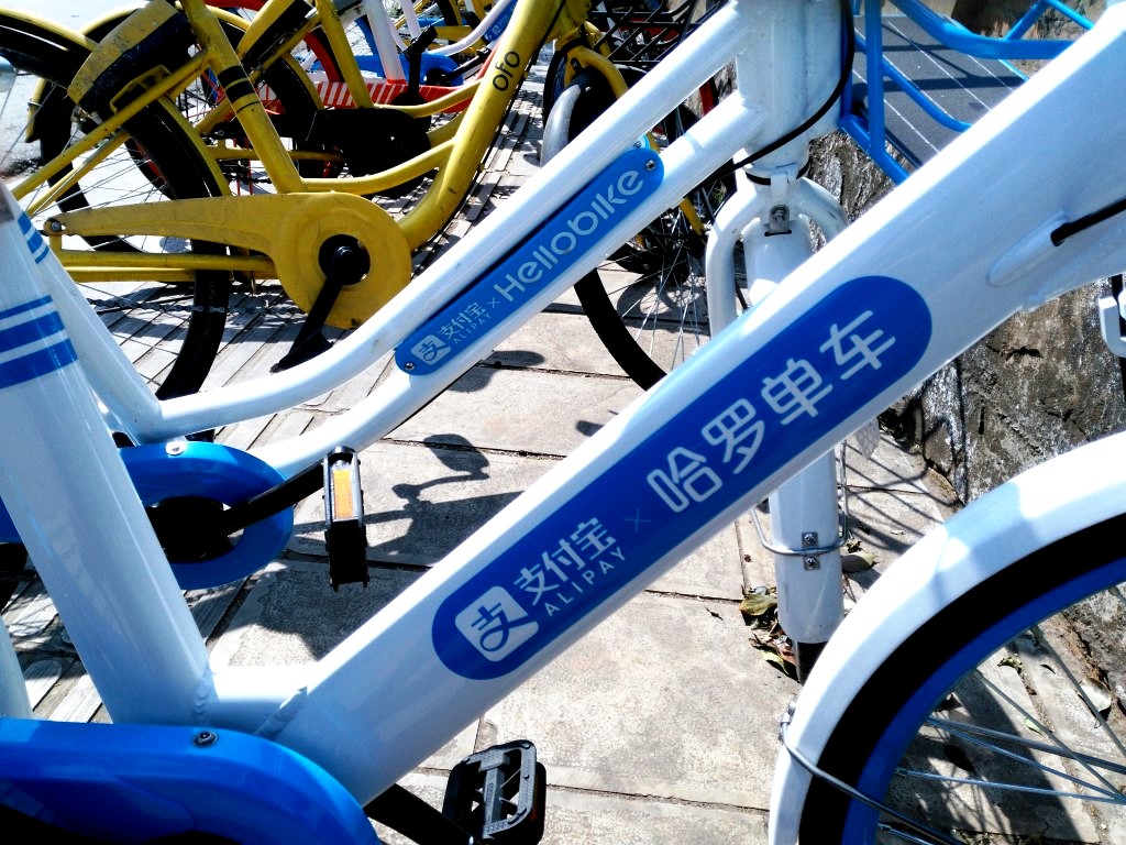 These blue bicycles emblazoned with “Hello Bike” actually say “hello” in English when you unlock them: