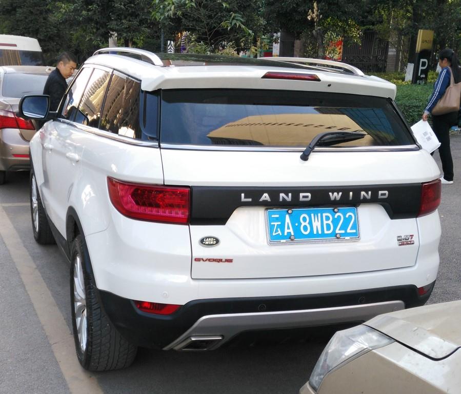 Near the package delivery spot, I saw a “Land Wind” SUV parked at the curb (a clear copy-cat of the Land Rover, at one-third the price):