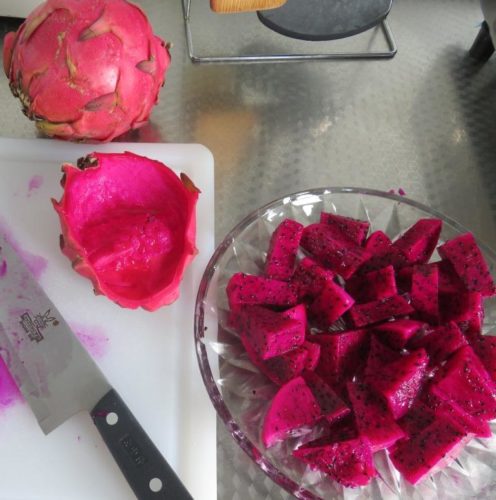 In a different context, but still about food, we were amazed at the deep red color of this variety of dragon fruit: