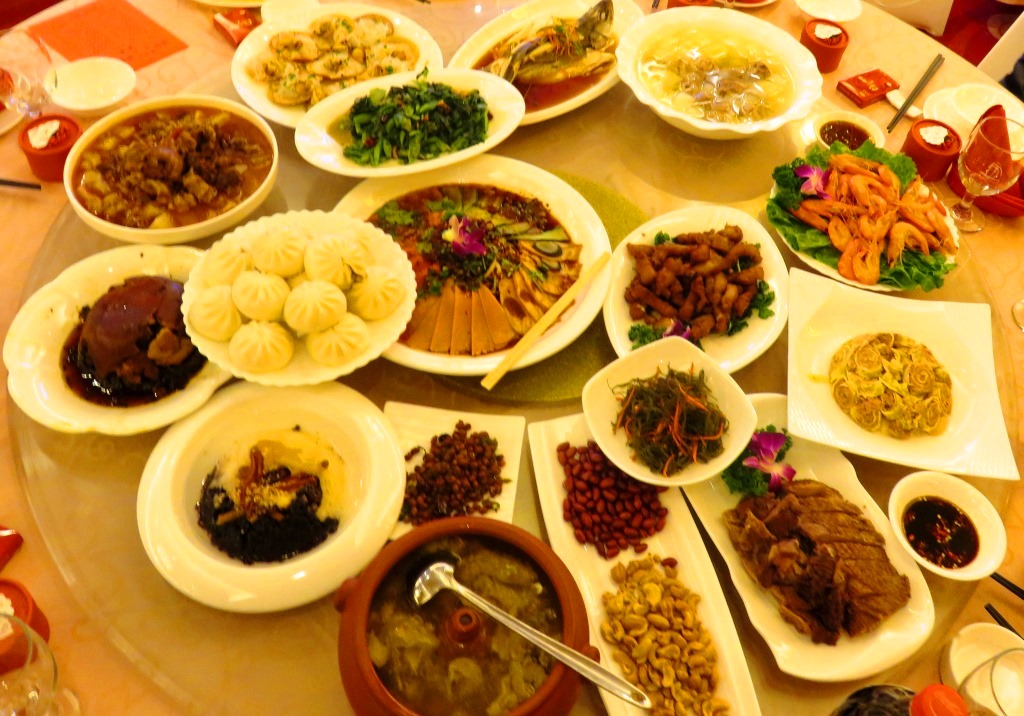 and a big feast of good food at each table:
