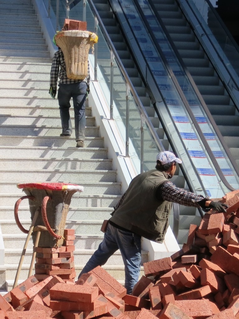 But even along the highway, there are always interesting things to see in China. Farmers working in their fields: